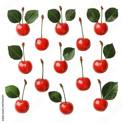 Fresh cherries arrangement on a plain background perfect for fruit designs isolated on transparent background