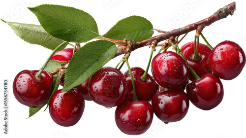 Fresh Cherry Bunch on Branch with Vivid Highlights and Details