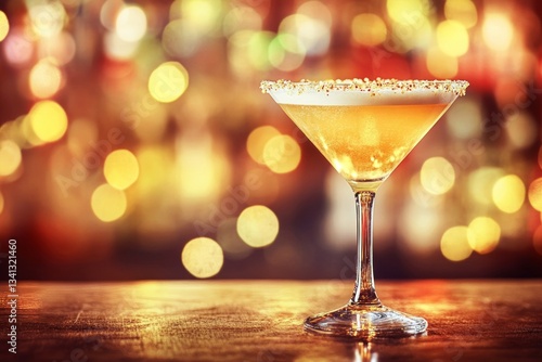 Fresh cocktails with a combination of fruit, on a wooden table with a blurry background of sparkling light