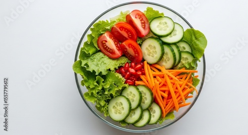 Fresh, Colorful Salad Bowl with Tomatoes, Cucumbers, Carrots, and Lettuce