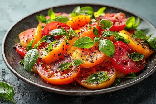 Fresh Colorful Salad with Basil and Herbs on Plate