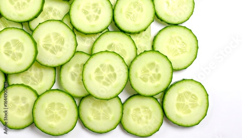 Fresh Cucumber Slices Arranged in a Pattern on White Background
