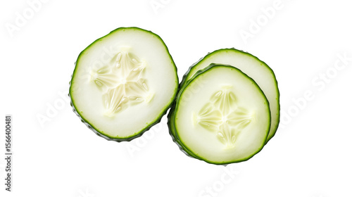 Fresh cucumber slices showcase vibrant green rims isolated on transparent background