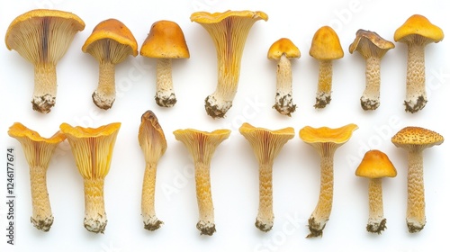 Fresh Edible Chanterelle Mushrooms on White Background Display