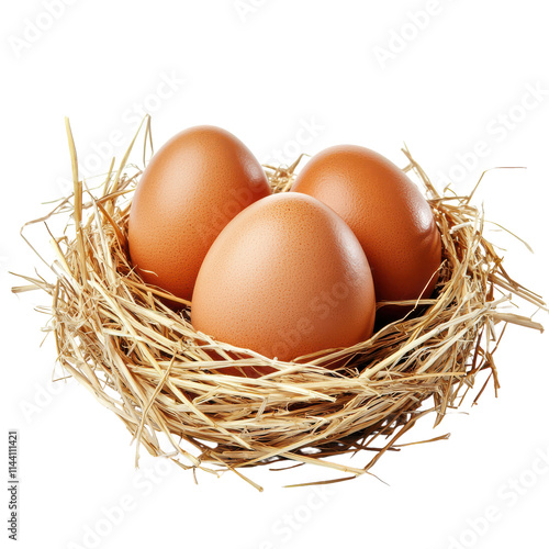 Fresh Eggs Nestled in Straw on White Background for Culinary Use Transparent Background