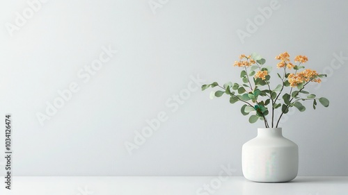 Fresh flowers in a white vase against a minimalistic background.