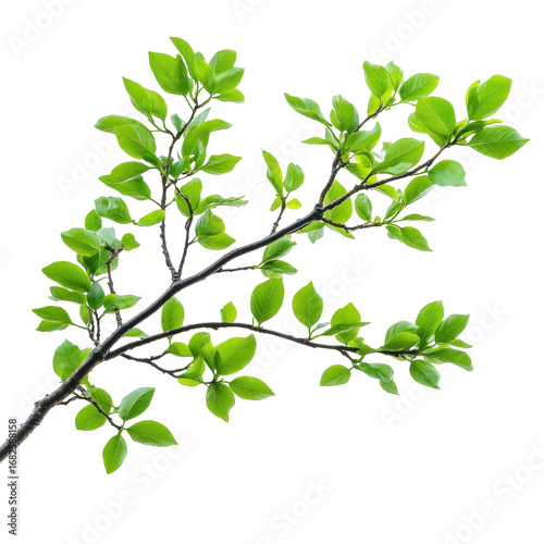 Fresh green branch with leaves isolated on black background spring nature botany, isolated on a transparent background