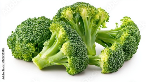 Fresh green broccoli florets arranged attractively, showcasing their vibrant color and healthy appearance.