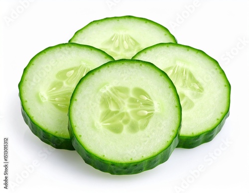 Fresh green cucumber slice isolated on white background