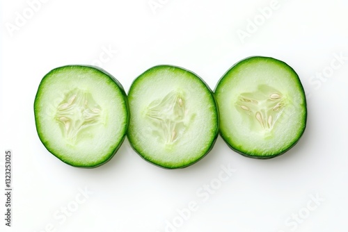 Fresh Green Cucumber Slice Isolated on White Background Close Up
