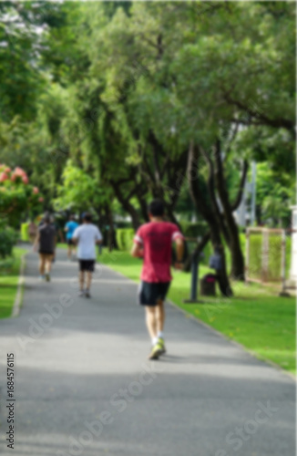 Fresh green lawns in the park. Blur nature bokeh green park trees in morning.