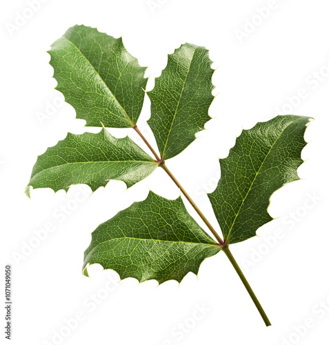 Fresh green Mahonia or oregon grape leaves falling in the air isolated on white background