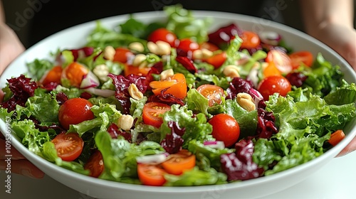 Fresh greens, herbs, and veggies make a delightful dish for sharing with friends