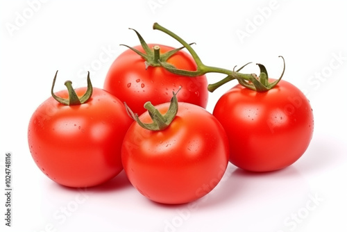 Fresh, juicy tomatoes with a sprig of parsley on a white background.