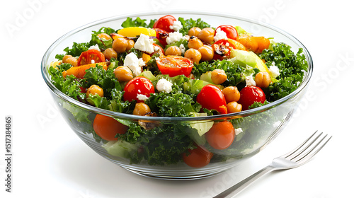Fresh Kale Salad with Chickpeas, Cherry Tomatoes, and Feta Cheese