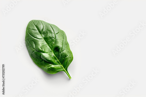 Fresh leaf Spinach, close up. White isolated background, top view. Space for text.