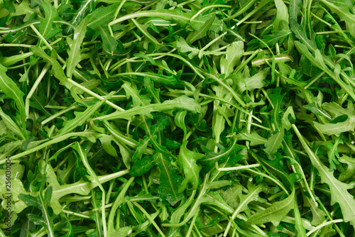 Fresh leaves of arugula as background.