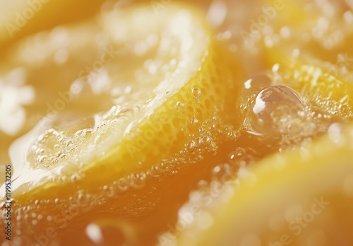 Fresh Lemon Slices in Sparkling Fizzy Drink with Bubbles and Bright Yellow Color on a Refreshing Summer Day, Perfect for Refreshment or Cocktails