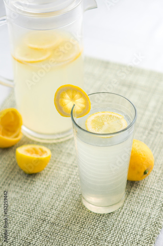 Fresh lemonade vertical view. Lemonade is traditionally a homemade drink made with squeezed lemon, water and sugar, a simple recipe for a quick refreshing summer drink packed with vitamin c.