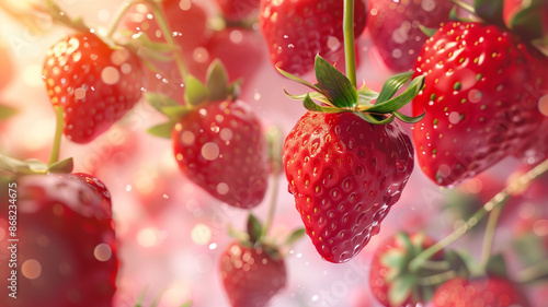 Fresh, lush and vibrant strawberries, Generative AI.新鮮で瑞々しい躍動感あふれるイチゴ、Generative AI。