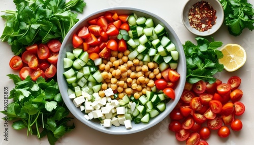 Fresh Mediterranean Chickpea Salad with Colorful Vegetables in a Bowl