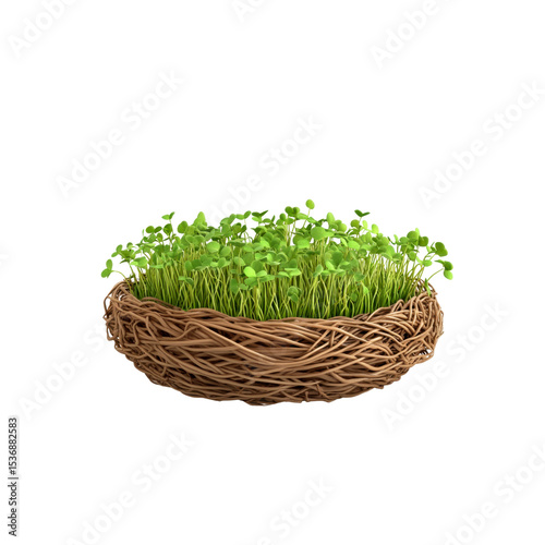 Fresh Microgreens Nestled in a Bird's Nest - Springtime Growth and Renewal