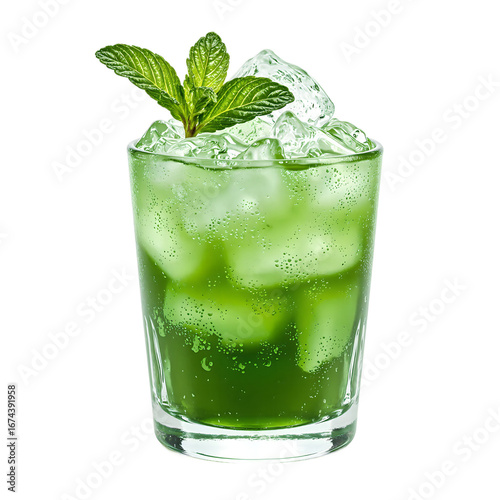 Fresh mint julep beverage with crushed ice in a short glass perfect for summer refreshment, isolated