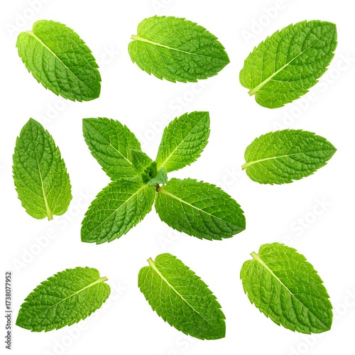 Fresh mint leaves arranged on white background (1)