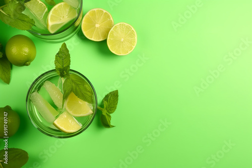 fresh mojito juice drink with mint. Summer cold drink concept with copy space - Generative AI