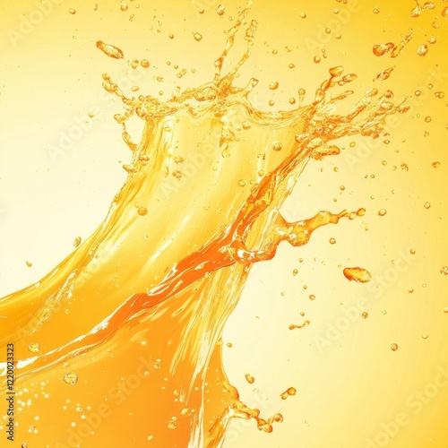 Fresh Orange Juice Splashing Upward with Vivid Yellow Background