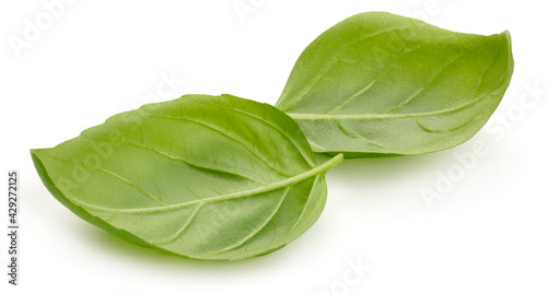 Fresh organic basil leaves, close-up, isolated on white background. High resolution image.