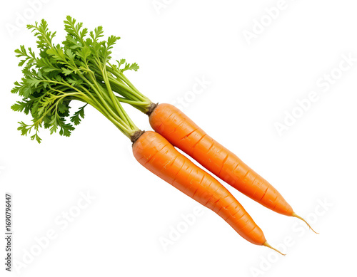 Fresh Organic Carrots with Green Leaves on Transparent background