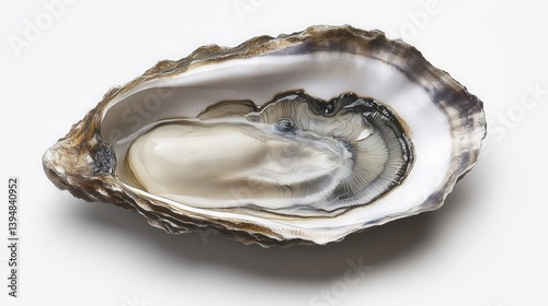 Fresh oyster on white background showcasing its delicate texture and pearly luster in a close up shot