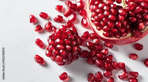 Fresh Pomegranate with Juicy Seeds on a Light Background for Healthy Eating Concept