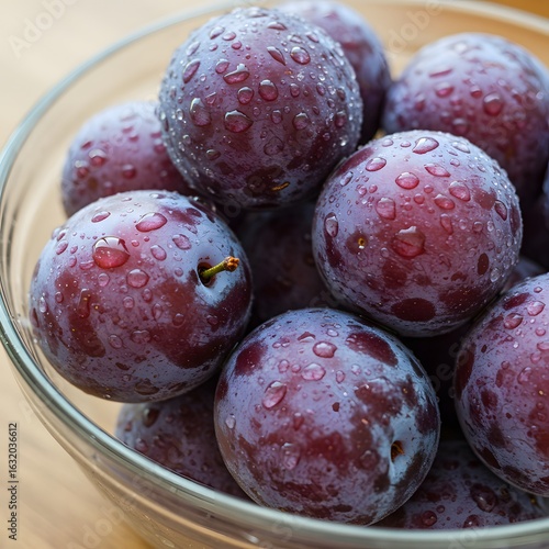 Fresh Purple Plums in a Glass Bowl, Juicy and Ripe, Highlighting the Natural Color, Flavor, and Health Benefits of This Delicious Fruit