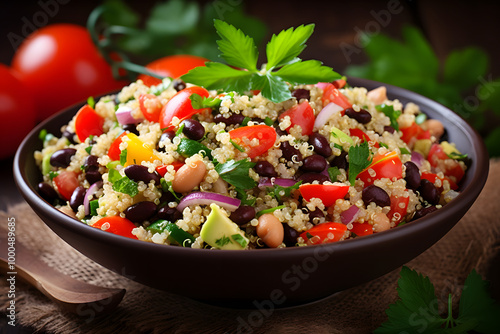 Fresh Quinoa and Bean Salad with Tomatoes, Avocado, and Red Onions – Healthy Vegan Meal