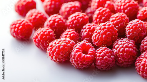 Fresh raspberries arranged beautifully, showcasing their vibrant color and intricate texture, ideal for healthy recipes and desserts.