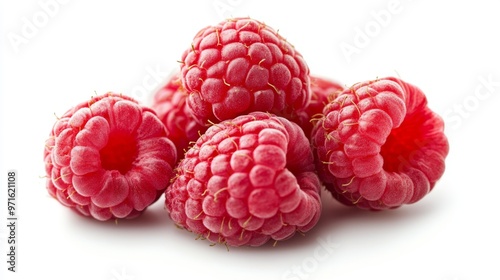 Fresh Raspberries Arranged Together Against a Plain White Background Highlighting Their Rich Color
