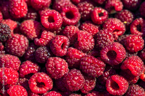 Fresh raspberries background closeup. Backdrop for your design . The concept of a healthy diet. Copy space.