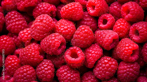Fresh raspberries filling the entire frame, food background created with Generative Ai