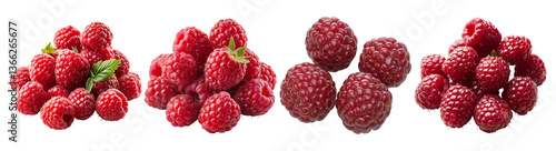 Fresh Raspberries in Varied Groups and Arrangements on White Background, PNG bundle collection, Isolated on Transparent Background