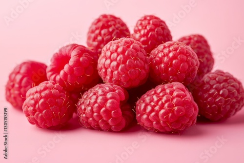Fresh raspberries stacked on a pink background for a vibrant and colorful presentation