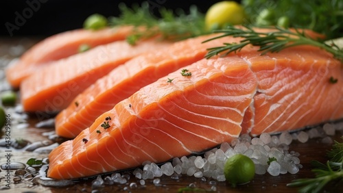 Fresh Raw Salmon Steaks with Herbs, Lemon, and Spices