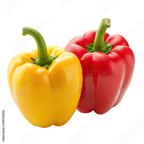 Fresh red and yellow bell peppers ready for cooking and healthy meal preparation, Photograph red and yellow bell peppers used in cooking isolated on Transparent background