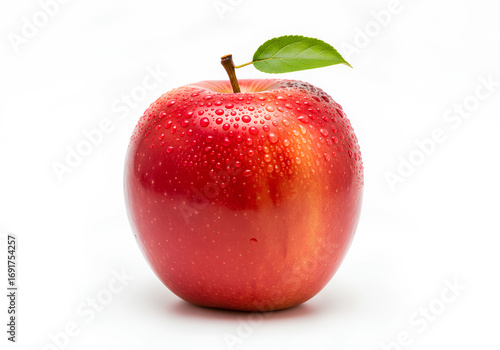 Fresh Red Apple with Dew Drops on Isolated White Background