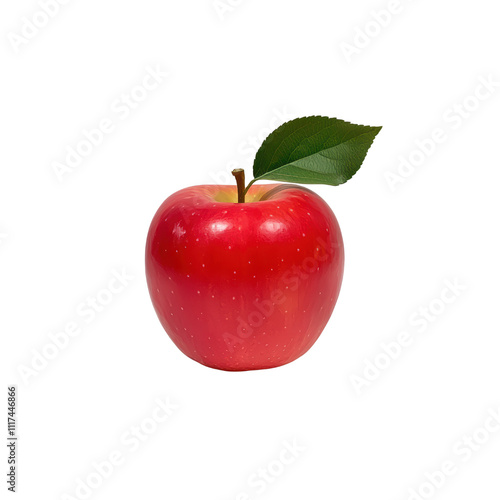 Fresh red apple with green leaf, symbolizing health and vitality isolated on transparent background