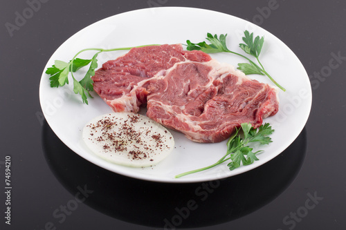 Fresh Red Beef Ribs with Dill and Green Sprouts