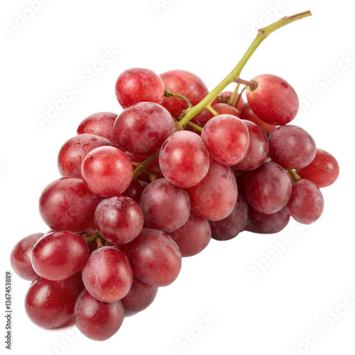 Fresh Red Grapes Cluster with Stem and Water Droplets on transparent background Closeup