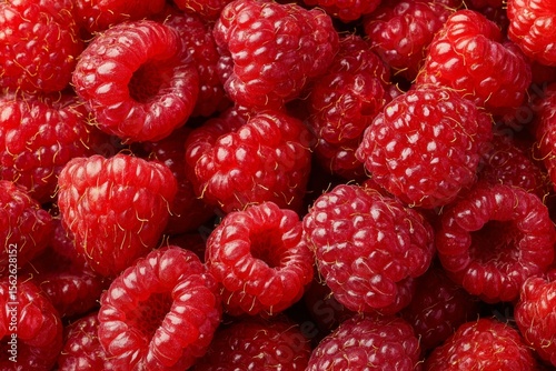 Fresh red raspberries close-up juicy, ripe, organic, delicious, vibrant fruit