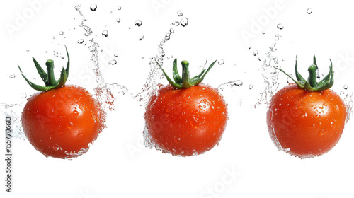 Fresh Red Tomatoes Splashing in Water with Bubbles, Isolated on a Black Background for Culinary and Healthy Lifestyle Themes